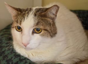 Goodman came to us after his owner passed away, so he’s had to do some adjusting. He’s declawed, and x-rays found that he had bone fragments in his paws, so he needed surgery to remove them. Fortunately, that should make him feel so much better! But more adjusting.